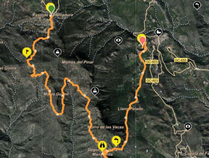 de la Plata (Silberstraße), die auch Teil des Jakobswegs auf Gran Canaria ist. Auf Ihrer Wanderung erreichen Sie ebenfalls den Cruz Grande. Der Weg verläuft parallel zu den Straßen GC60 und GC600 und