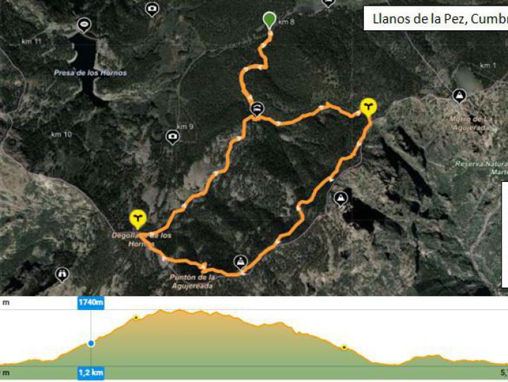 Wir erreichen die Kreuzung mit dem Camino de la Plata und setzen den Abstieg fort, überqueren kleine Schluchten sowie Gebiete mit Kiefernwald und Felsen. Schließlich kehren wir wieder zur Schutzhütte Díaz Bertrana und zum Grillplatz von Llanos de la Pez zurück.